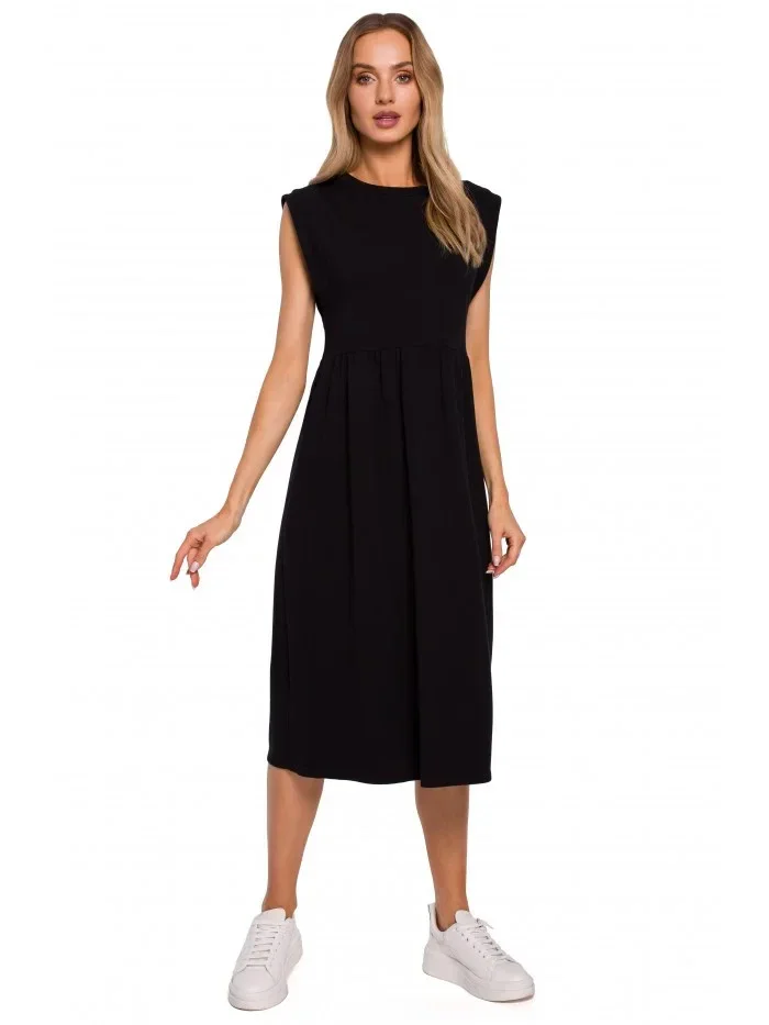 M581 Šaty bez rukávů s vysokým pasem - černé