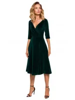 80 % bavlna 20 % polyester Vylepšete svůj styl s těmito elegantními midi šaty, které vnesou do vašeho vzhledu luxusní a glamour atmosféru. Zavinovací výstřih do V, přiléhavý pas a rozšířená zavinovací sukně INFORMACE O PRODUKTU: úpletová tkanina - samet Zavinovací šaty se skrytým zipem na zádech Výstřih do V s možností stažení z ramen rukávy v délce lokte Nepodšité pod kolena Naše modelka měří 171 cm a nosí velikost S