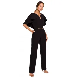 95% polyester 5% elastan Hra s detaily, tento jednodílný overal s efektem pláštěnky na zádech a řetízkem vpředu určitě upoutá pozornost. INFORMACE O PRODUKTU: tkaná látka jednodílný overal s efektem pláštěnky dělený výstřih rovné nohavice ozdobný řetízek v pase skryté zapínání na zip na zádech boční kapsy naše modelka měří 171 cm a nosí velikost S