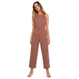 M679 Overal bez rukávů s páskem a sponou - čokoládový