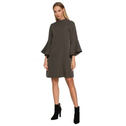 M698 Šaty áčkového střihu s andělskými rukávy - khaki barva