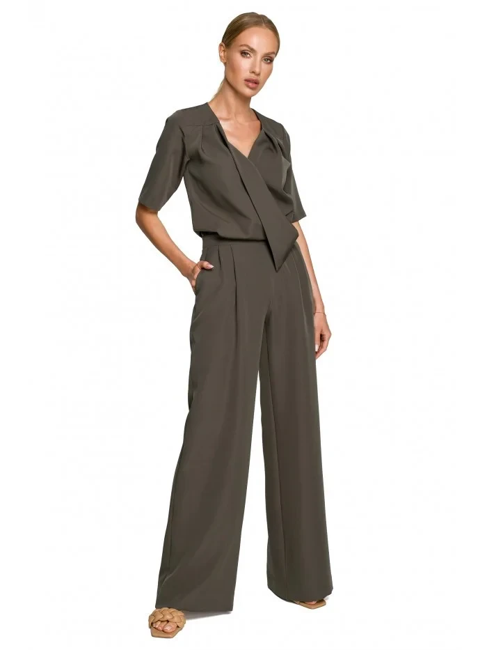 95% polyester 5% elastan Představte si rychlý a dokonalý outfit - přesně takový je náš overal s širokými nohavicemi a ozdobnou klopou ve tvaru V. INFORMACE O PRODUKTU: tkaná látka jednodílný overal se zavinovací přední částí se zapínáním na patentky a ozdobnou klopou krátké rukávy široké nohavice se záhyby v pase přední šikmé kapsy skryté zapínání na boční zip bez podšívky naše modelka je vysoká 171 cm a nosí velikost S