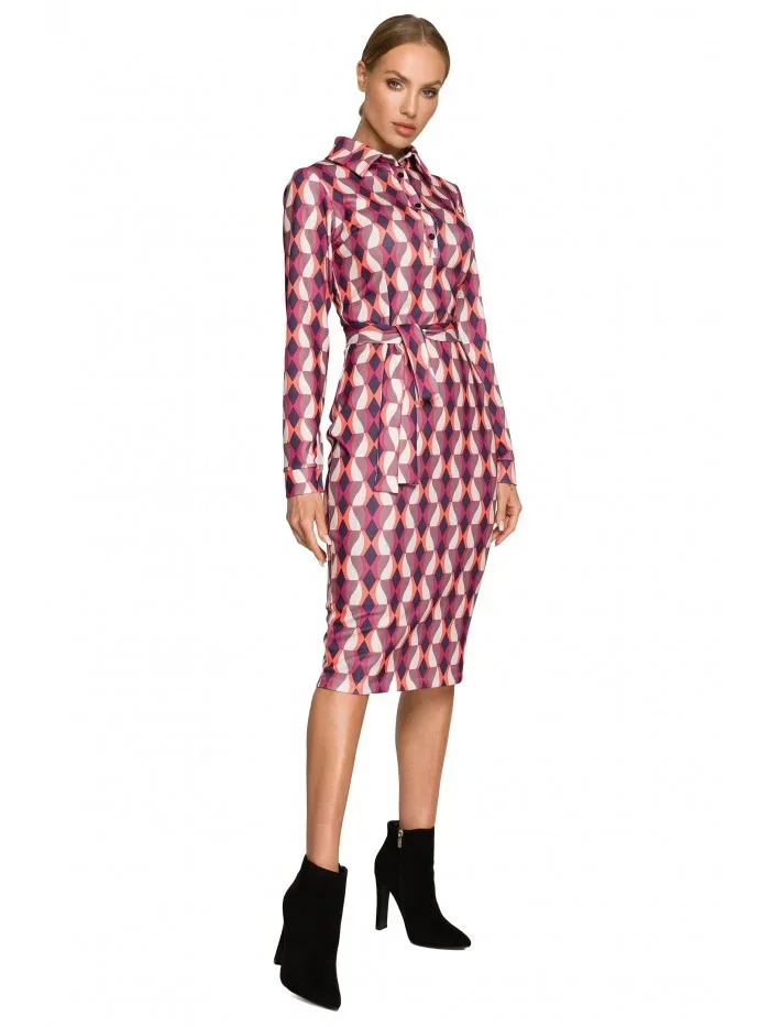 M706 Šaty s rukávy, límcem a potiskem - model 2
