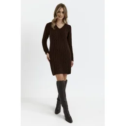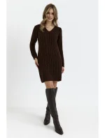 Svetr dámský z měkké pleteniny s kulatým výstřihem hnědý