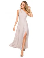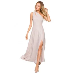 95% polyester 5% elastan Elegantní a šik. Tyto šaty ozvláštní každou příležitost. Dlouhý rozšířený střih s vysokým rozdělením nohou a vypasovaným vrškem na jedno rameno se sexy výřezem. INFORMACE O PRODUKTU: úpletová tkanina se třpytkami maxi délka šatů s detailem na jedno rameno vypasovaný vršek s rozdělením na rameni skrytý boční zip rozšířená maxi sukně s vysokým rozdělením nohou bez podšívky naše modelka měří 171 cm a nosí velikost S