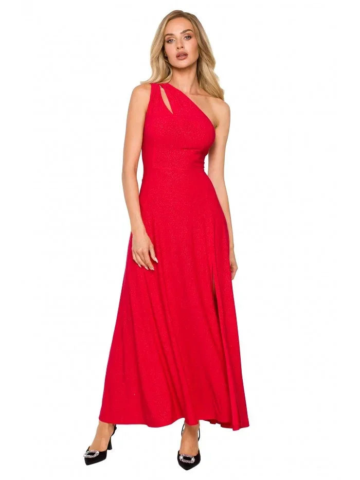 95% polyester 5% elastan Elegantní a šik. Tyto šaty ozvláštní každou příležitost. Dlouhý rozšířený střih s vysokým rozdělením nohou a vypasovaným vrškem na jedno rameno se sexy výřezem. INFORMACE O PRODUKTU: úpletová tkanina se třpytkami maxi délka šatů s detailem na jedno rameno vypasovaný vršek s rozdělením na rameni skrytý boční zip rozšířená maxi sukně s vysokým rozdělením nohou bez podšívky naše modelka měří 171 cm a nosí velikost S
