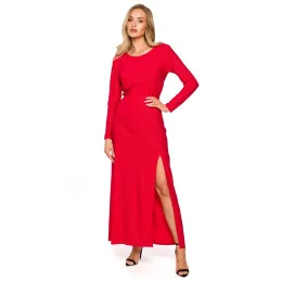 M719 Maxi šaty s dlouhými rukávy - červené