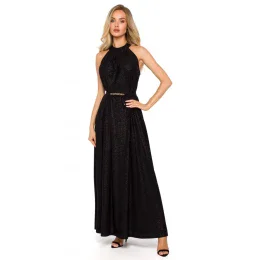 95 % polyester 5 % elastan Jedny šaty - mnoho možností střihu: rozšířený střih s výstřihem na ramínka a páskem na zavázání nabízí volnost pohybu a možnost volby. Šaty můžete nosit buď volně, nebo stažené v pase. INFORMACE O VÝROBKU: úpletová tkanina se třpytkami maxi délka šatů s výstřihem na ramínka a hlubokým rozparkem na zádech áčkový střih plný výstřih přetažený přes hlavu zapínání na knoflíky a poutka na zádech bez podšívky naše modelka měří 171 cm a nosí velikost S