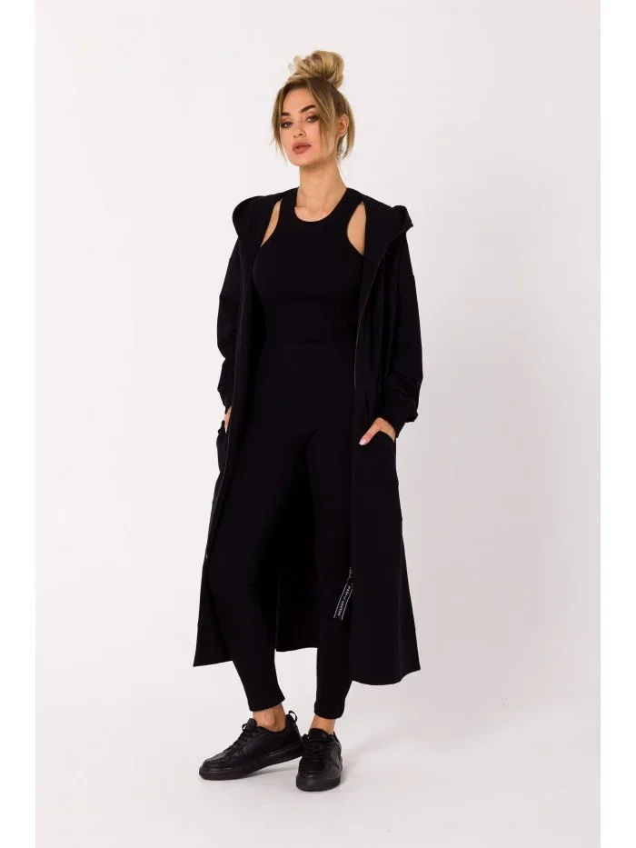 M729 Mikina s kapucí a dlouhým zipem - černá