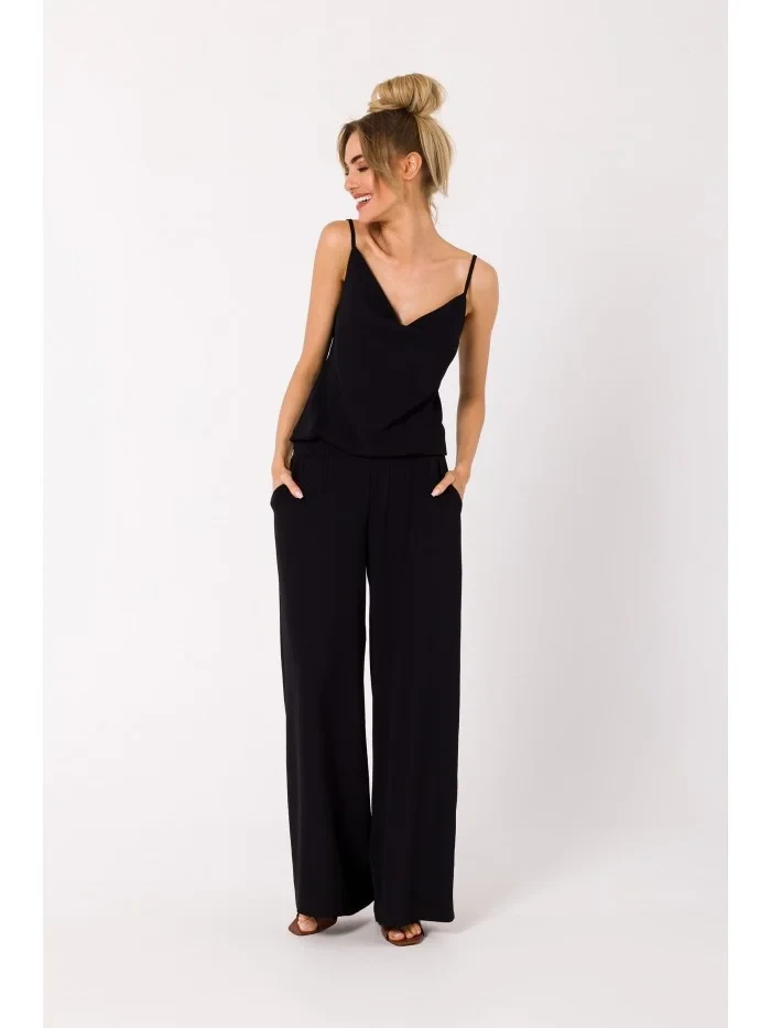M737 Overal se špagetovými ramínky - černý