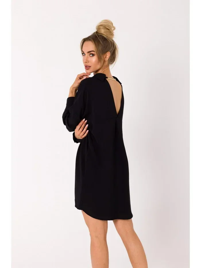 95% polyester 5% elastan Tyto košilové šaty volného střihu jsou zdobené řetízkem ve výstřihu do V. INFORMACE O PRODUKTU: tkaná látka mini košilové šaty s límečkem volný střih hluboký výstřih vzadu s ozdobným řetízkem dlouhé rukávy s manžetami naše modelka měří 171 cm a nosí velikost S