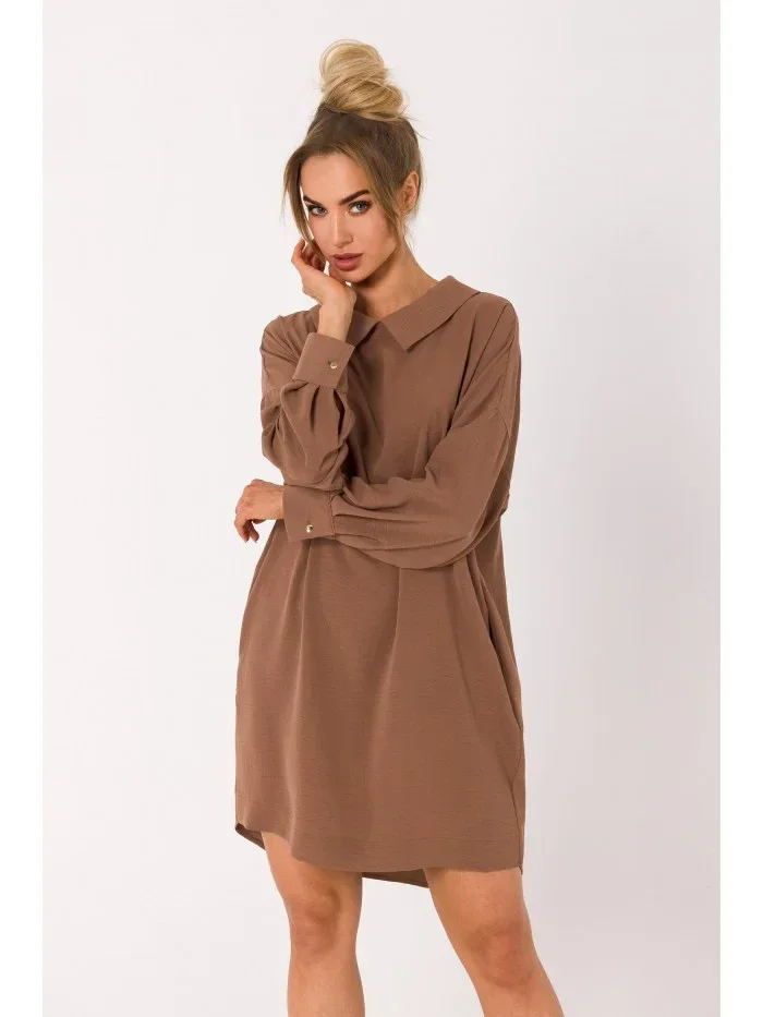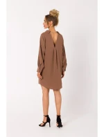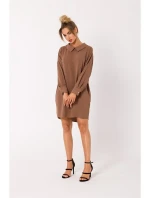 M740 Košilové šaty s ozdobným límcem - čokoládové