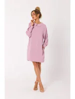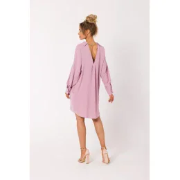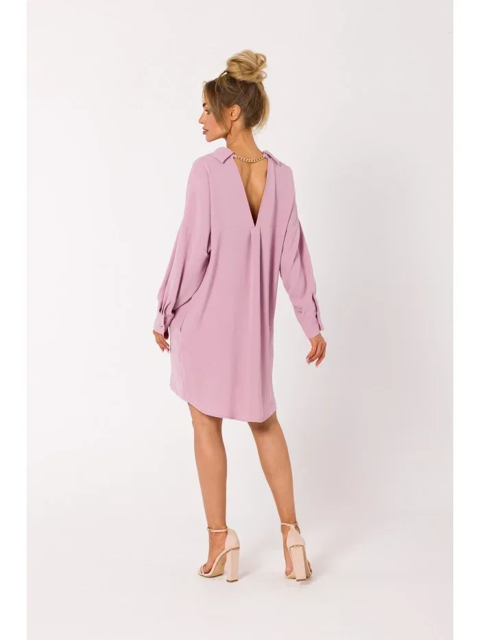 M740 Košilové šaty s ozdobným límečkem - krepové růžové