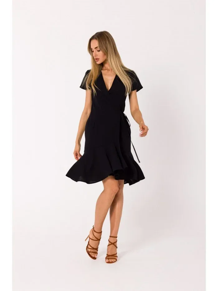 M741 Zavinovací šaty s vázáním - černé