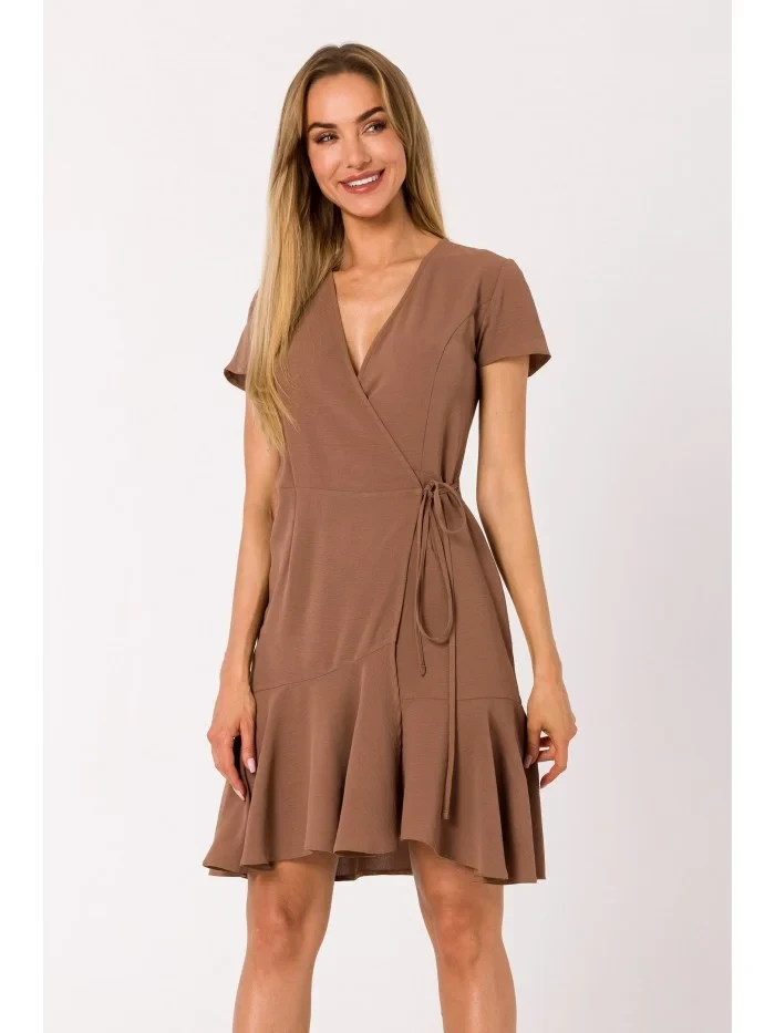 M741 Zavinovací šaty s vázáním - čokoládové