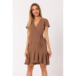 95% polyester 5% elastan Zavinovací letní šaty zdobené spodním volánem - snadno se oblékají a pohodlně nosí. INFORMACE O PRODUKTU: zavinovací šaty z tkané látky zavazované na boku uvnitř skrytý detail zavazování přiléhavý vršek s výstřihem do V krátké rukávy nad kolena sukně zakončená volánem bez podšívky naše modelka je vysoká 171 cm a nosí velikost S