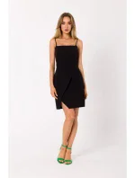 95 % polyester 5 % elastan Mini šaty se zavinovacím vzorem a nastavitelným výstřihem se špagetovými ramínky. Informace o výrobku: tkaná látka mini šaty se zavinovacími ramínky zavinovací sukně kovové zapínání na zip na zádech bez podšívky naše modelka je vysoká 171 cm a nosí velikost S