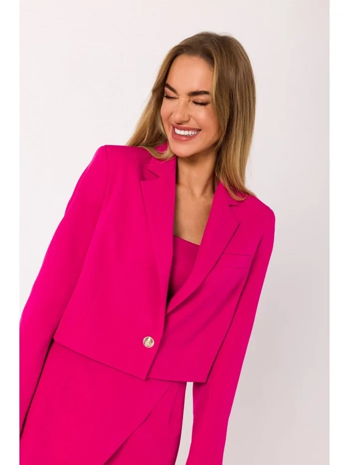95% polyester 5% elastan Oříznutá silueta, klasický límec a zapínání na jeden knoflík - moderní a hravý design, který pozvedne váš pracovní nebo příležitostný outfit. INFORMACE O VÝROBKU: tkaný materiál oříznuté sako s jedním knoflíkem, límcem a imitací kapsy vpředu dlouhé rukávy regular fit plně podšité naše modelka měří 171 cm a nosí velikost S