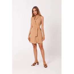 M747 Blejzrové šaty se zavazováním v pase - karamelové
