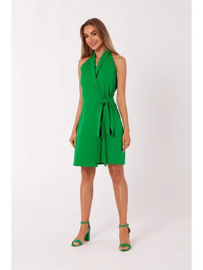 95 % polyester 5 % elastan Zavinovací šaty s výstřihem vylepšené šálovým límcem. Zavažte si je kolem pasu nebo na boku. INFORMACE O VÝROBKU: tkaný materiál blejzr mini šaty bez rukávů zavinovací design zavázaný na boku nebo kolem pasu bez podšívky naše modelka je vysoká 171 cm a nosí velikost S