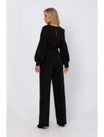 95% polyester 5% elastan INFORMACE O PRODUKTU: tkaná látka jednodílný overal s dlouhými biskupskými rukávy a manžetami na knoflíky výstřih s posádkou ozdobné zapínání na knoflíky na zádech a skrytý zip široké zmačkané nohavice bez podšívky náš model je vysoký 171 cm a nosí velikost S Navrženo a vyrobeno v Polsku