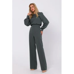95% polyester 5% elastan INFORMACE O PRODUKTU: tkaná látka jednodílný overal s dlouhými biskupskými rukávy a manžetami na knoflíky výstřih s posádkou ozdobné zapínání na knoflíky na zádech a skrytý zip široké zmačkané nohavice bez podšívky náš model je vysoký 171 cm a nosí velikost S Navrženo a vyrobeno v Polsku