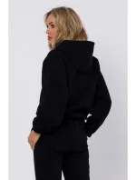 - Střih: delší mikina s kapucí, šňůrkou a zipem