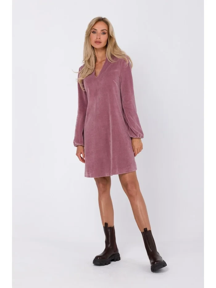 80% bavlna 20% polyester INFORMACE O PRODUKTU: pletenina - samet uvolněný střih Šaty áčkového střihu přetažené přes hlavu výstřih do V dlouhé rukávy zakončené pružným lemem délka nad kolena bez podšívky naše modelka je vysoká 171 cm a nosí velikost S Navrženo a vyrobeno v Polsku