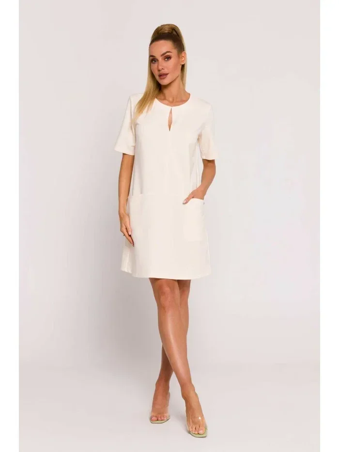 92 % bavlna 8 % elastan INFORMACE O PRODUKTU: úpletová tkanina áčkové šaty s krátkými rukávy výstřih s klíčovou dírkou přední kapsy ve švu s ozdobným odznakem s logem bez podšívky naše modelka je vysoká 171 cm a nosí velikost S navrženo a vyrobeno v Polsku