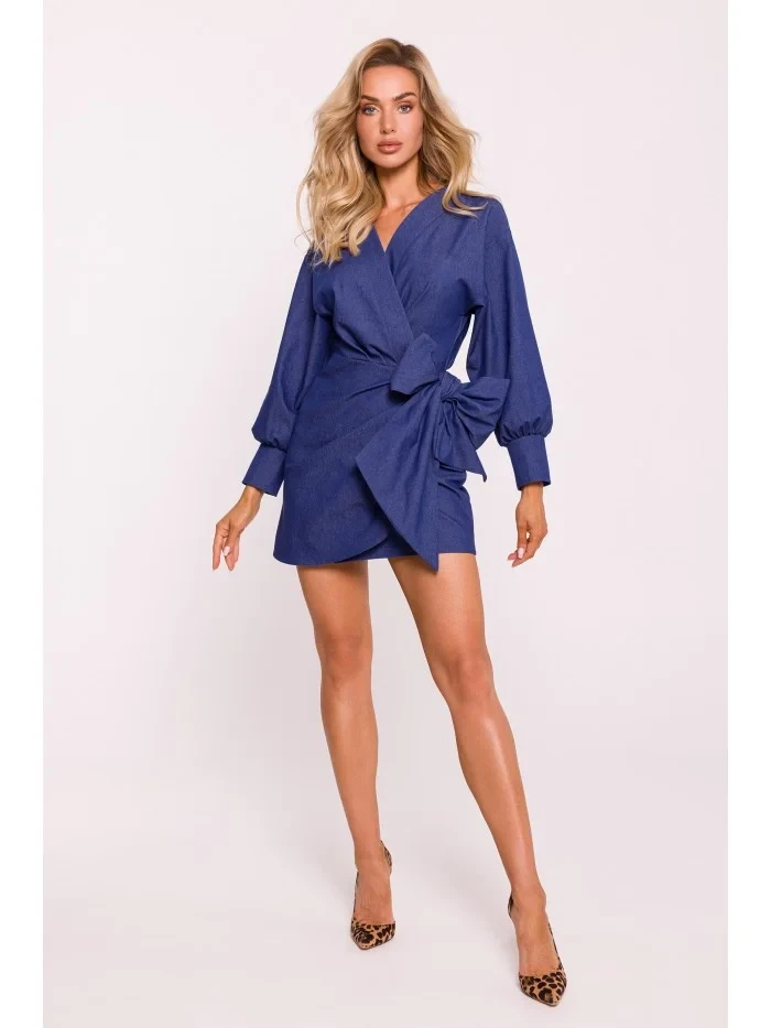 M802 Mini zavinovací šaty s vázáním - modré