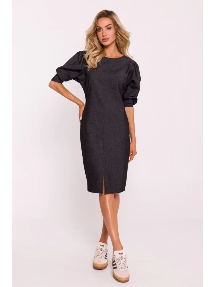 76 % bavlna 21 % polyester 3 % elastan INFORMACE O PRODUKTU: tkanina na bázi bavlny šaty s puff rukávy geometrické prošívání vpředu rozdělené odhalené zapínání vzadu na zip 7/8 délky rukávů pod kolena délka bez podšívky naše modelka je vysoká 171 cm a nosí velikost S navrženo a vyrobeno v Polsku