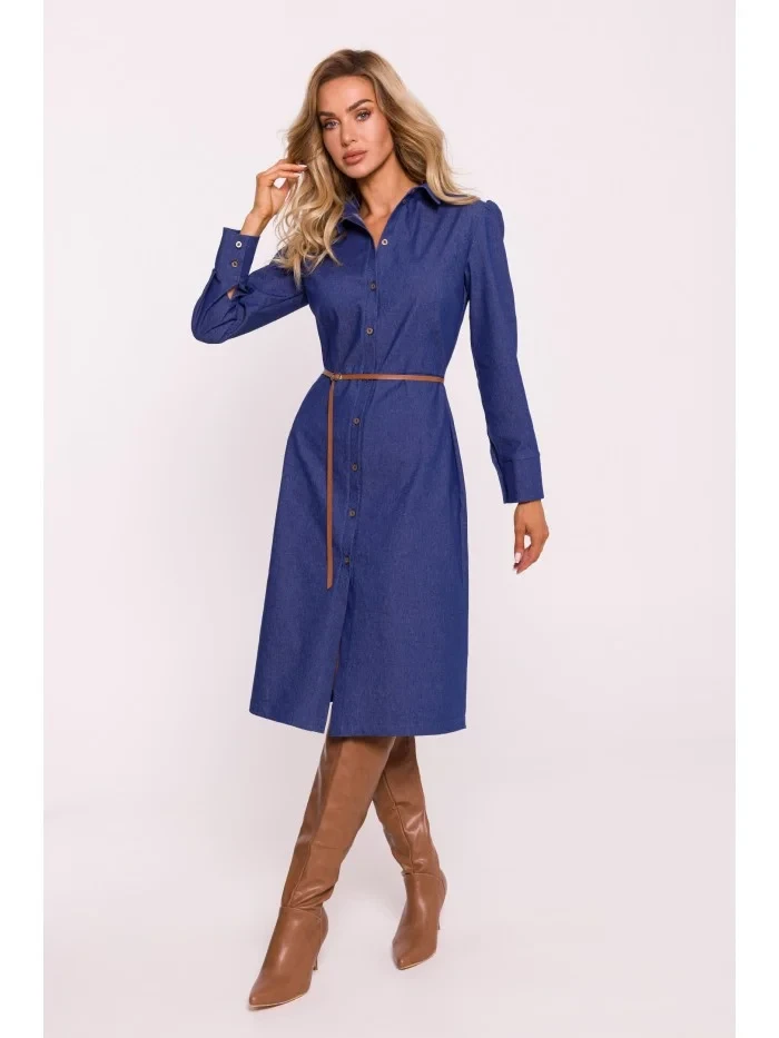 M804 Košilové šaty s páskem - modré