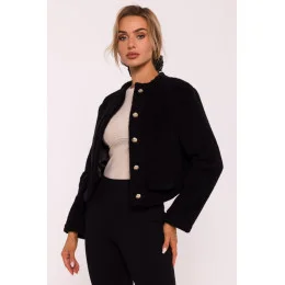 100% polyester INFORMACE O PRODUKTU: medvídkový úplet zkrácené sako zapínání na knoflíky vpředu ozdobné zlaté knoflíky umělé kapsy s klopou plně podšité náš model je vysoký 171 cm a nosí velikost S navrženo a vyrobeno v Polsku