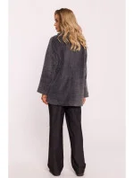 M808 Oříznuté teddy sako - šedý melír