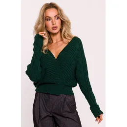 M809 Oříznutý svetr s výstřihem do V - zelený