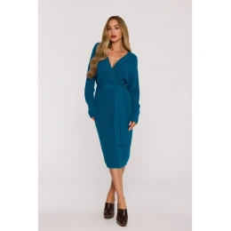 M810 Svetrové šaty s výstřihem do V - oceánsky modré