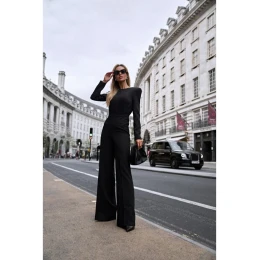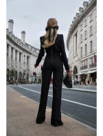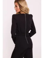 95 % polyester 5 % elastan INFORMACE O PRODUKTU: tkaná látka kombinéza se širokými nohavicemi vypasovaný horní díl a stahování v pase dlouhé rukávy s polstrovanými rameny odhalený zadní zip bez podšívky naše modelka je vysoká 171 cm a nosí velikost S navrženo a vyrobeno v Polsku