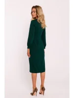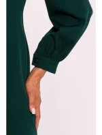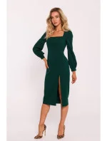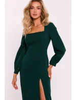 648-1 Módní maxi šaty s rozparkem na nohavicích - lahvově zelené