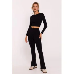 M816 Žebrované legíny s dělenou nohavicí - černé