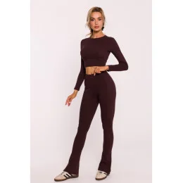 M816 Žebrované legíny s dělenou nohavicí - hnědé