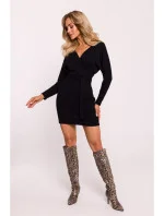 M819 Zavinovací šaty z žebrovaného úpletu - černé