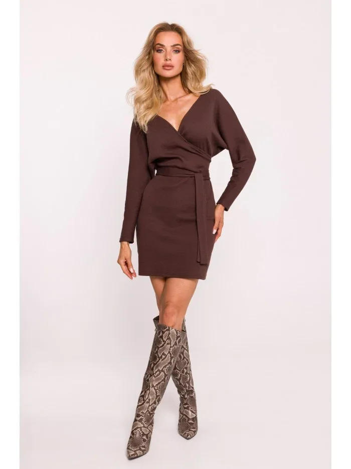 M819 Zavinovací šaty z žebrového úpletu - hnědé