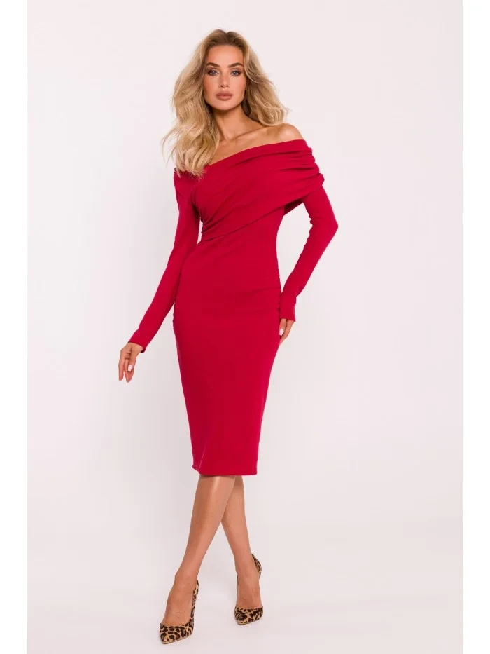 M820 Asymetrické šaty s výstřihem z žebrového úpletu - červené