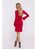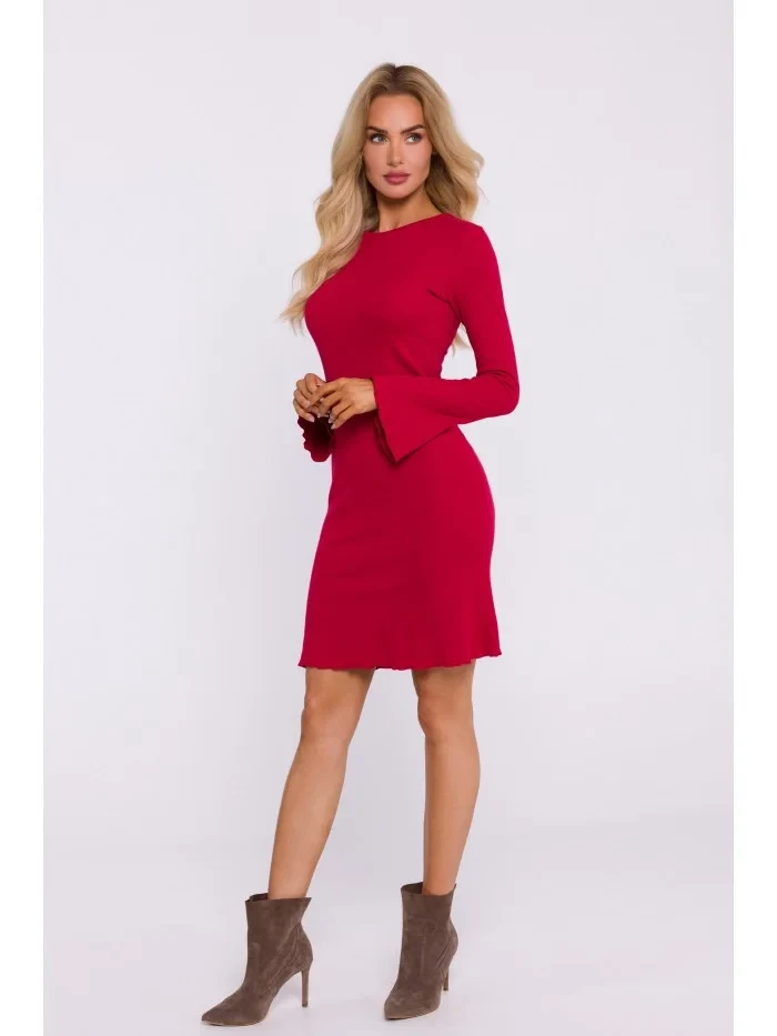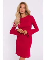 M821 Šaty z žebrového úpletu se širokými rukávy - červené