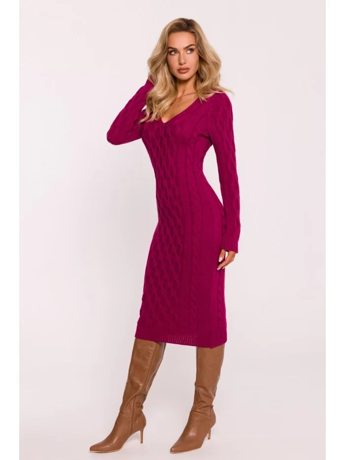 M824 Svetrové šaty s výstřihem do V - růžové