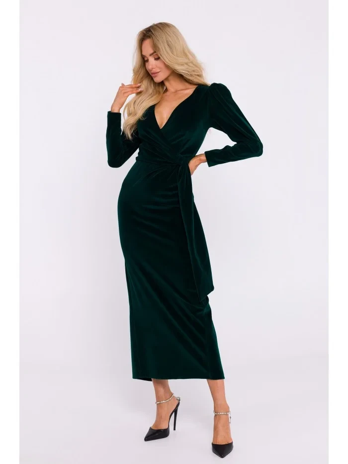 M828 Sametové maxi šaty s hlubokým výstřihem do V - zelené