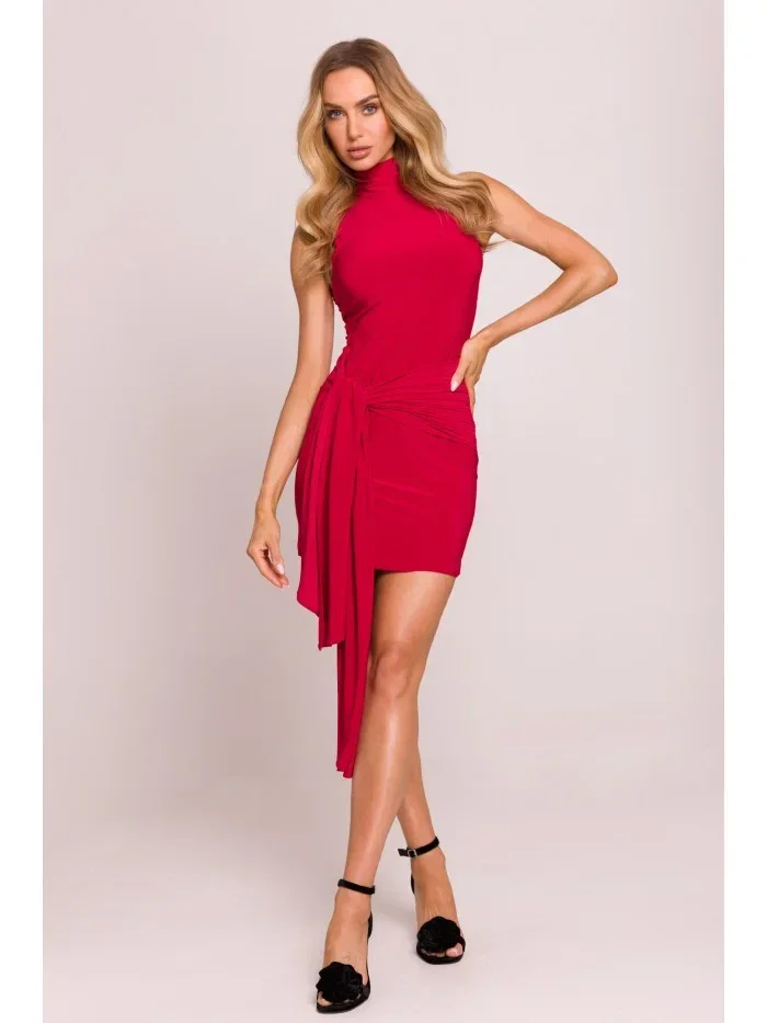 M841 Mini šaty s vázáním vpředu - červené