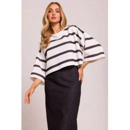 50% bavlna 50% polyester INFORMACE O PRODUKTU: pletenina s potiskem nadměrná velikost crop top tříčtvrteční rukávy bateau výstřih naše modelka je vysoká 171 cm a nosí velikost S navrženo a vyrobeno v Polsku
