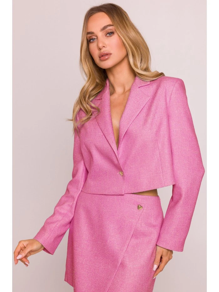 70 % polyester 27 % wiskoza 3 % elastan INFORMACE O PRODUKTU: tkaná látka crop blejzr s límcem zapínání na jeden knoflík ve tvaru srdce podšitý náš model je vysoký 171 cm a nosí velikost S navrženo a vyrobeno v Polsku