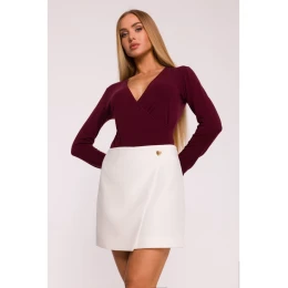 70 % polyester 27 % wiskoza 3 % elastan INFORMACE O PRODUKTU: mini sukně z tkané látky faux wrap design s jedním knoflíkem ve tvaru srdce skryté zapínání na boční zip podšitá naše modelka měří 171 cm a nosí velikost S navrženo a vyrobeno v Polsku